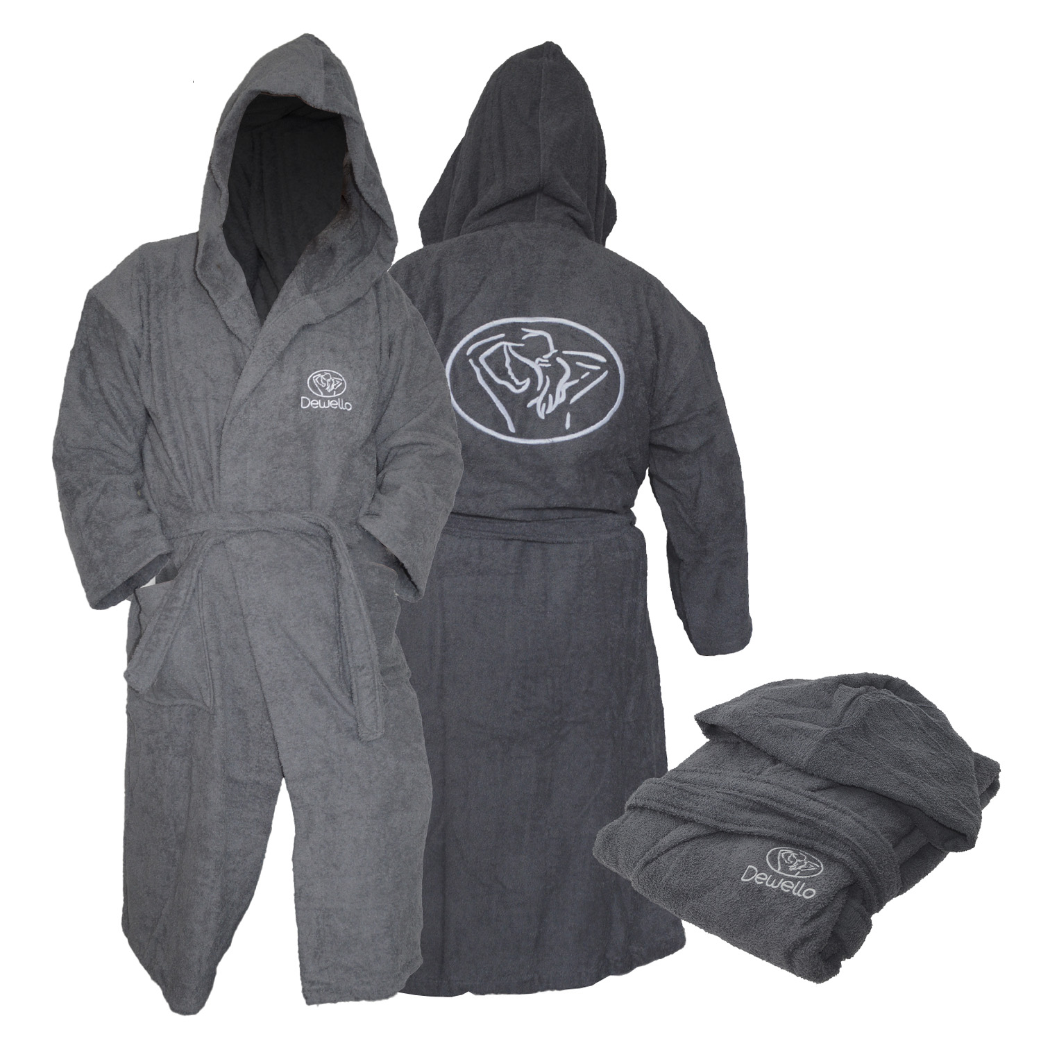 Dewello Bademantel – Komfort und Wohlbefinden nach Sauna und Sport Der Dewello Bademantel bietet das ideale Zusammenspiel von Komfort, Stil und Funktionalität. Egal, ob nach einem erfrischenden Saunagang, nach dem Sport oder einfach für entspannte Stunden zu Hause – dieser Bademantel ist Ihr perfekter Begleiter. Hergestellt aus 100% Baumwolle bietet der Bademantel ein besonders weiches Tragegefühl und maximale Saugfähigkeit. Der verwendete 390-400 g/m² Walkfrottee nimmt Feuchtigkeit schnell auf und trocknet rasch, sodass Sie sich jederzeit frisch fühlen. Mit einem modernen, schlichten Design ist der Dewello Bademantel sowohl für Damen als auch Herren geeignet. Die Unisex-Ausführung sorgt für ein angenehmes Tragegefühl und bietet in Kombination mit der praktischen Kapuze zusätzlichen Komfort und Wärme. Der Bademantel ist in verschiedenen Größen von S bis XXL verfügbar, sodass für jeden die passende Passform gewährleistet ist. Neben seiner eleganten Optik überzeugt der Dewello Bademantel durch seine einfache Pflege. Er ist maschinenwaschbar und bleibt auch nach vielen Wäschen farbecht und formstabil. Durch seine langlebige Qualität bleibt der Bademantel über lange Zeit ein treuer Begleiter in Ihrem Alltag. Vielseitig einsetzbar: Ob nach der Sauna, nach dem Sport oder einfach beim Entspannen zu Hause – der Dewello Bademantel bietet den perfekten Komfort in jeder Situation. Auch als Geschenk eignet er sich hervorragend, da er Entspannung und Wohlbefinden in einem stilvollen Design vereint. Material und Pflegehinweise: Material: 100% Baumwolle, 390-400 g/m² Walkfrottee Mit Kapuze Farbe: Grau Größen: S bis XXL Maschinenwaschbar, farbecht, formstabil Eleganz und Funktion in einem: Die zeitlose graue Farbe macht den Bademantel zum stilvollen Begleiter in jedem Zuhause. Ob nach dem Duschen, Baden oder für gemütliche Stunden im Bademantel – er bietet in jeder Situation maximalen Komfort.