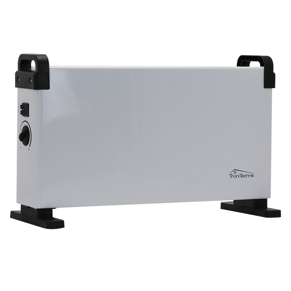 TroniTechnik Konvektor-Heizung – 750/1250/2000 Watt, mobil & kompakt, mit Thermostat Effiziente Wärme auf Knopfdruck Drei Heizstufen: 750, 1250 oder 2000 Watt – je nach Wärmebedarf einstellbar Thermostatsteuerung für stufenlose Temperaturregelung Geräuschloser & geruchsloser Betrieb – ideal für Innenräume Schnelle Aufheizung – auch für temporären Einsatz geeignet Flexibel einsetzbar Kann freistehend verwendet oder an der Wand montiert werden Tragegriffe an beiden Seiten – einfaches Umstellen und Transportieren Platzsparendes Design – nur ca. 10,5 cm tief Geeignet für Räume bis ca. 20 m² – ideal für Schlafzimmer, Büro, Wohnwagen Technik & Sicherheit Überhitzungsschutz für sicheren Betrieb Schutzklasse I – mit Schutzleiteranschluss Netzkabellänge ca. 140 cm – flexibel platzierbar im Raum Nennspannung: 220–240 V | Frequenz: 50/60 Hz Maße & Details Abmessungen (L x H x T): ca. 50 x 26,5 x 10,5 cm Höhe mit Stellfuß: ca. 31 cm Gewicht: ca. 1,8 kg – leicht und tragbar Farbe: Weiß (Körper), schlichte Optik für jede Umgebung Lieferumfang: 1x TroniTechnik Konvektor-Heizung, inkl. Standfüße Schnell heizen ohne Aufwand Der Konvektor von TroniTechnik bietet punktgenaue Wärme ohne Wartezeit. Mit drei Leistungsstufen und stufenlosem Thermostat heizen Sie flexibel genau dort, wo es gebraucht wird – ob zuhause, im Büro oder unterwegs im Wohnwagen. Einfach einstecken, einschalten und Wärme genießen. Platzsparend & mobil Dank der kompakten Maße passt die Heizung auch in kleine Räume oder enge Ecken. Die integrierten Tragegriffe ermöglichen einen schnellen Ortswechsel. Alternativ kann das Gerät auch an der Wand montiert werden – perfekt für Räume mit wenig Stellfläche (Montagematerial nicht enthalten). Ideal für Übergangszeiten & kalte Tage Wenn die Zentralheizung noch nicht läuft oder punktuell Unterstützung gebraucht wird, ist der Konvektor eine praktische Lösung. Der Betrieb ist geräuschlos und damit auch im Schlafzimmer angenehm. Die Wärme wird gleichmäßig im Raum verteilt – ohne Gebläse oder Luftzug. Sicher & unkompliziert Der integrierte Überhitzungsschutz sorgt für einen sicheren Betrieb, auch bei längerem Einsatz. Die einfache Bedienung über Drehregler macht das Gerät besonders benutzerfreundlich – keine komplizierte Technik, sondern zuverlässige Wärme auf Knopfdruck. TroniTechnik – Wärme, wann und wo Sie möchten Ob als Zusatzheizung, Übergangslösung oder schneller Wärmespender – der Konvektor von TroniTechnik ist flexibel einsetzbar, energiesparend im Betrieb und angenehm leise. Die durchdachte Konstruktion kombiniert Funktionalität mit einfacher Handhabung – für komfortable Wärme in jedem Raum.
