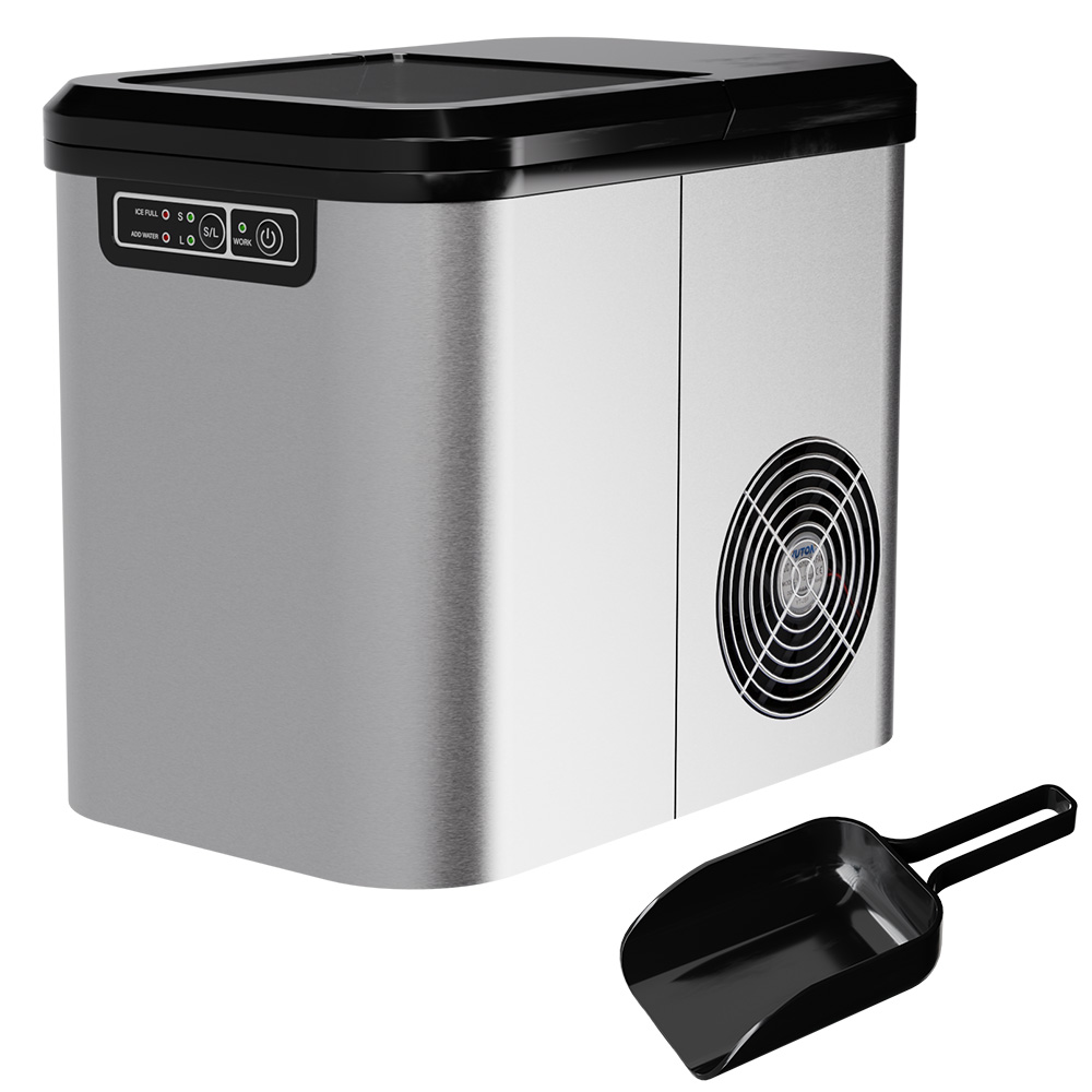Entdecken Sie die ultimative Lösung für Ihre Erfrischungsbedürfnisse. Egal ob Sie einen gemütlichen Abend mit Freunden verbringen, eine ausgelassene Party veranstalten oder einfach nur ein erfrischendes Getränk an einem heißen Tag genießen möchten – mit dieser Eiswürfelmaschine haben Sie immer die perfekte Versorgung. Schnelle Produktion: Innerhalb von nur wenigen Minuten liefert Ihnen die Maschine kristallklare, perfekt geformte Eiswürfel. Nie wieder müssen Sie auf das Einfrieren im Gefrierfach warten. Einfache Bedienung: Mit dem benutzerfreundlichen Bedienfeld ist die Handhabung kinderleicht. Ein Knopfdruck genügt und die Maschine übernimmt den Rest. Vielseitigkeit: Ob kleine Eiswürfel für Cocktails oder große Würfel für Ihre Limonade – sie bietet verschiedene Größenoptionen, um all Ihre Bedürfnisse zu erfüllen. Kompaktes Design: Die elegante und platzsparende Bauweise fügt sich nahtlos in jede Küche, Bar oder jedes Büro ein. Perfekt für zu Hause und unterwegs! Energieeffizient: Trotz ihrer Leistung überzeugt die Eiswürfelmaschine durch ihren geringen Energieverbrauch. Genießen Sie die volle Leistung ohne schlechtes Gewissen. Kapazität: Bis zu 12 kg Eiswürfel pro Tag – ideal für jede Gelegenheit, vom Familienpicknick bis hin zu großen Events.Reservoir: Ein großzügiger Wassertank sorgt dafür, dass Sie auch bei größeren Feiern nie ohne Eis auskommen.Selbstreinigung: Mit der integrierten Reinigungsfunktion bleibt Ihre Maschine stets hygienisch und einsatzbereit. Ob Sie leidenschaftlicher Gastgeber sind oder einfach nur sicherstellen möchten, dass Ihre Drinks immer perfekt gekühlt sind – die Eiswürfelmaschine ist Ihr unverzichtbarer Begleiter. Beeindrucken Sie Ihre Gäste mit immer perfekt gekühlten Getränken und genießen Sie den Komfort, den nur die modernste Technologie bieten kann.